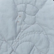 Taking Mantel’s Cromwell trilogy as a starting point for a stitched piece of work presents numerous choices for the textile practitioner. Does one attempt to recreate blackwork designs (and leave the needle in)? Are the difficulties of sewing with gold thread worth overcoming to conjure up the impression of magnificence? Should the usual striving for neatness and uniformity be abandoned in favour of an awkward little backstitch? And is hand quilting through wool worth the strain on the hands involved in working a material congruent with the novels’ period?