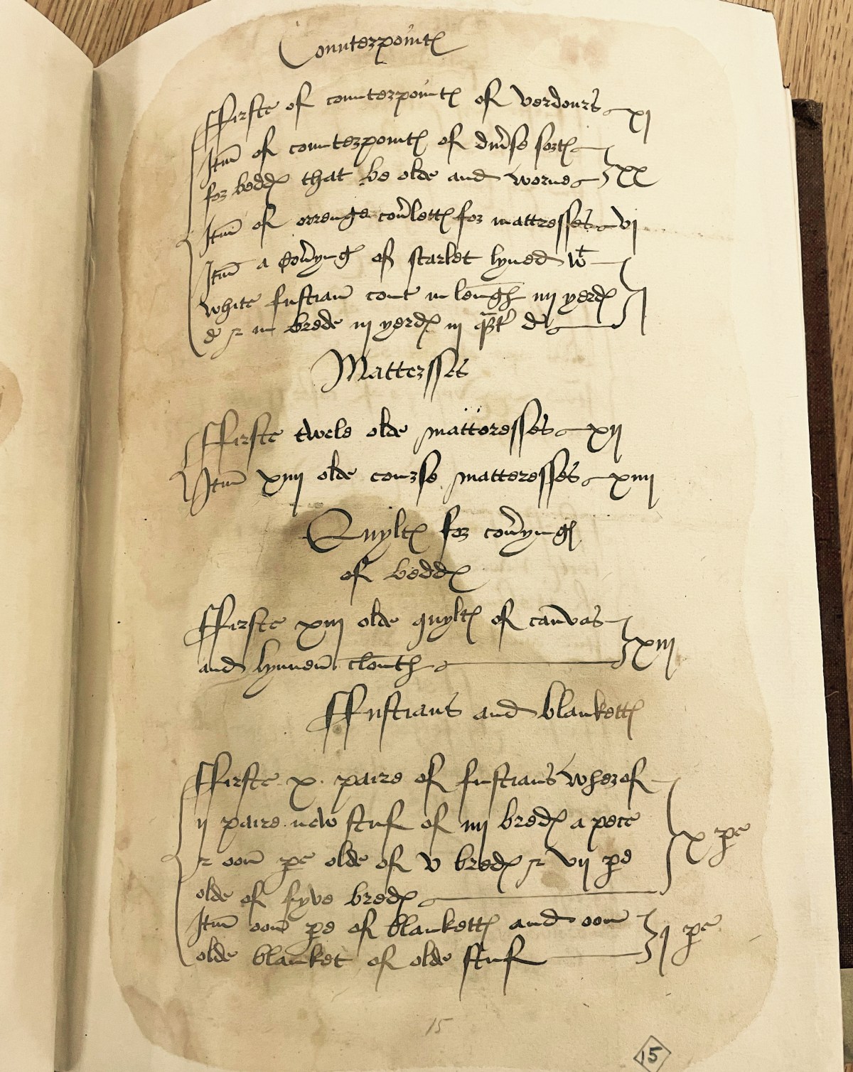 And right now in 2023, I’m energised by the shock of seeing Wolsey’s quilts inventoried nearly 500 years ago. I shall carry on looking.